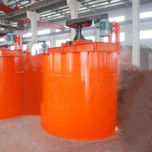 The motor and the V-belt of the motor or the gear motor drive the impeller of the stirring tank to rotate, so that the solid particles are suspended and the medicament and the slurry are fully mixed. It has the following four functions: slurry mixing, storage tank mixing, improved mixing and pharmaceutical mixing. The mixing tank is especially suitable for the beneficiation industry, and can also be used for the mixing of ore slurry in other industries.